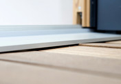 Für einen professionellen Anschluss verfügen Hellmiß Hebe-Schiebe-Türen über eine thermisch optimierte Schwelle im Fußbodenbereich um Einschränkungen in der Luftdichtigkeit zu minimieren.